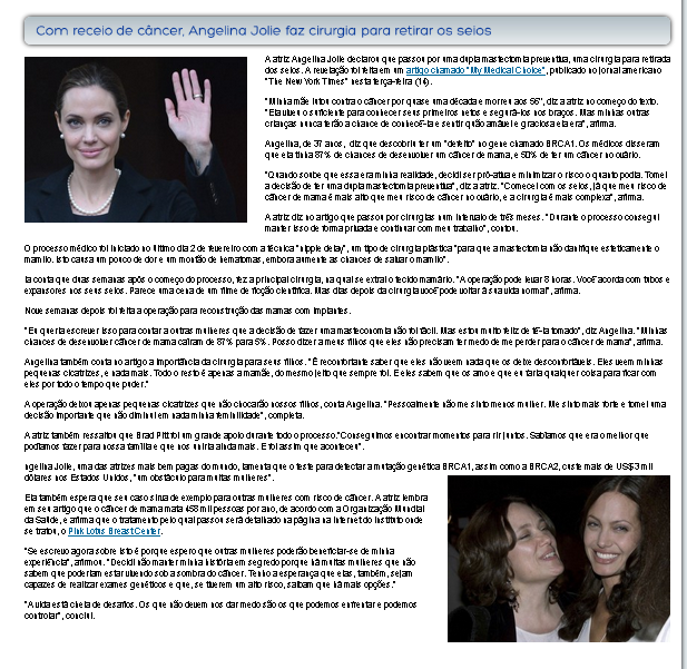 Procurei desenvolver uma atividade voltada à segunda e terceira série do Ensino Médio. Trata-se do estudo de um texto retirado da Revista Galileu para em seguida trabalhar a produção de um artigo de opinião. Coloquei links a fim de que o aluno possa pesquisar sobre os termos que irão nortear a discussão, bem como sobre aqueles que possam lhe chamar a atenção. Para ter acesso ao texto, entre no link abaixo.